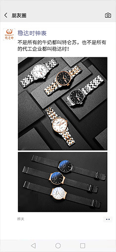 不同材質,不同工藝,不同質量的原材,價格最后都不一樣;穩(wěn)達時每只表精細選材,原裝進口機芯品質保證,先打樣后做貨、保障產品品質;我們始終堅信一分錢一分貨,從源頭把控產高品質,確保打磨出來的每一只表都是精品。 -